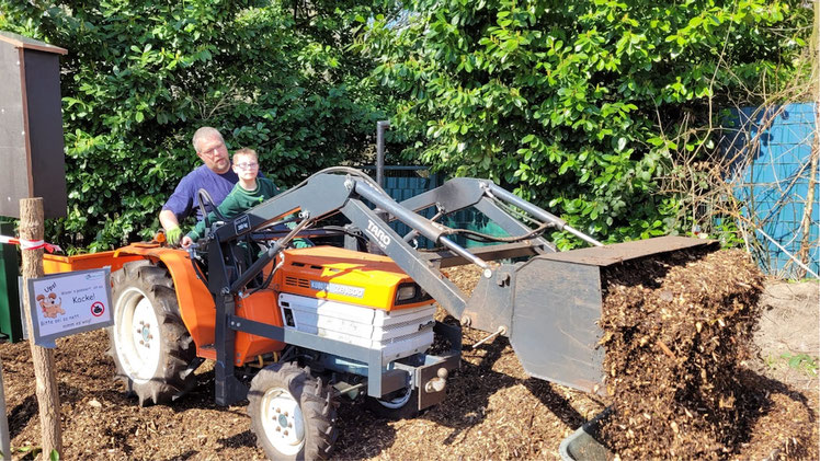 Die Nachbarn, die auf unserer Straße Hembrauk wohnen. Papa und Mama und die anderen verabreden sich und dann kommen alle und helfen. Letzte Woche haben wir die Wege neu gemacht mit Häcksel oder Mulch.